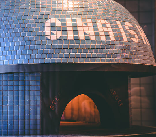 Der Ofen ist unser Herzstück. Die Konstruktionsweise des neapolitanischen Kuppelofens ermöglicht Temperaturen von knapp 500° Celsius. Traditionell wird der Ofen vom Fornaio (dem Bäcker) bedient, der mit einer kleinen Schaufel die Pizza im Ofen mehrmals dreht damit sie von allen Seiten gleichmäßig gebacken wird.